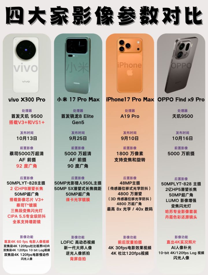 下半年四大家的影像又卷出了新认知,今天丸子就聊聊四家几款新机的影像参数。