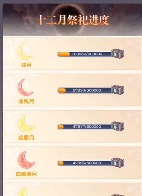 下面盘点活动第七天1-5开头服务器的情况。可见1245的太阳几乎无望,3开头的能约第15天左右打完太阳。124的月神赐福也同理几乎无望拿满,5不清楚。