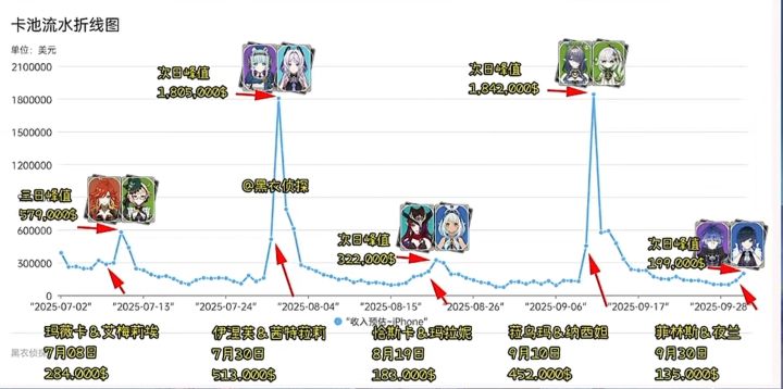 《原神》6.0版本下半卡池于9月30日正式开启,新五星雷系角色菲林斯与复刻角色夜兰共同进入限时卡池,根据第三方平台统计及社区数据的追踪,卡池首日流水表现整体趋势较平淡,新角色菲林斯的抽取数量成为绝对主力,而夜兰的复刻则略显冷清![[TapTap表情|TapFamilyxdoro2_粉狗比心]](https://img-tc.tapimg.com/market/images/101c7e3200596fe8e03765080b467fb8.gif)