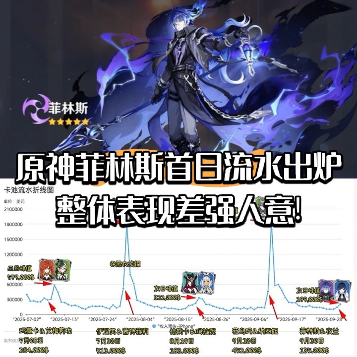 原神菲林斯首日流水出炉!整体表现差强人意!