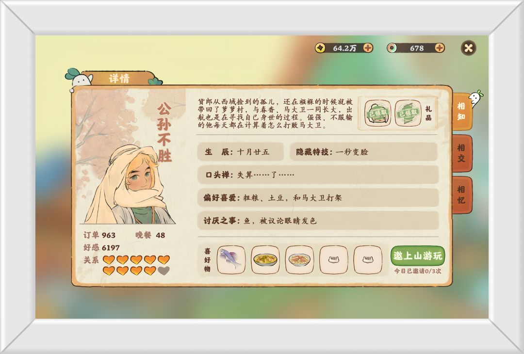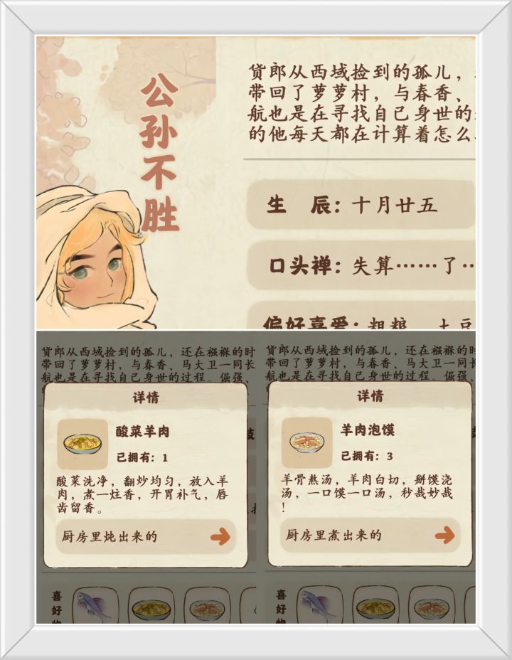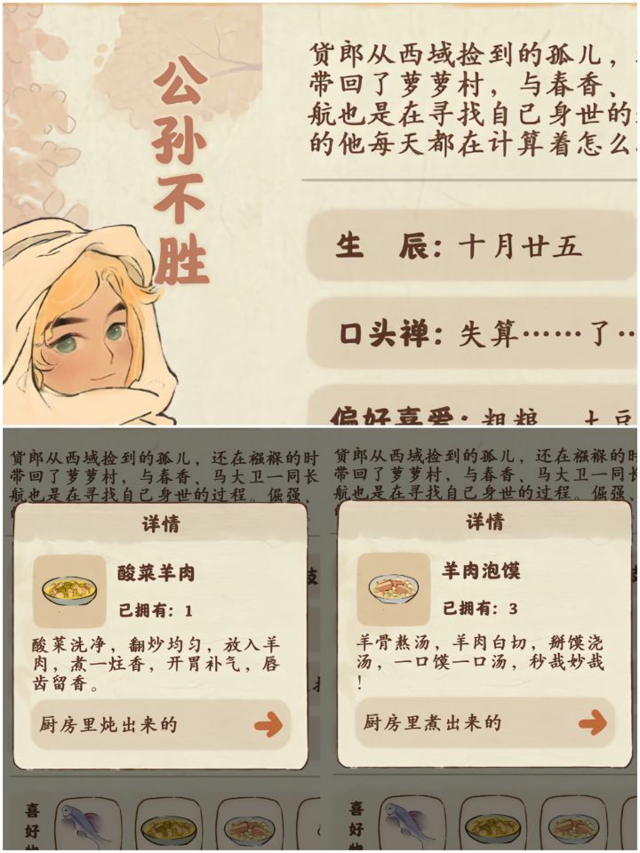 桃源真的好细节:公孙不胜是货郎从西域捡到的孤儿、被货郎带回了属于江南的萝萝山村生活了这么多年、饮食口味习惯还是没有随着货郎和其他村民的饮食口味而改变、依然忘不了爱吃羊肉的口味!