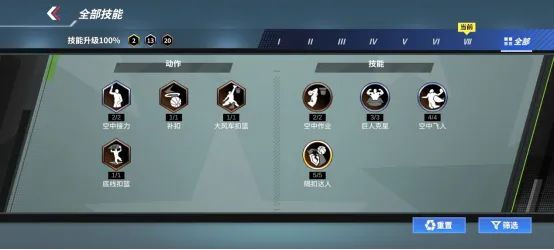 ● 除了靠打/上篮/抢断三项属性为蓝色,其余属性均为紫色。像这样的全能性在游戏内可谓凤毛麟角,从这一点来看,他真的具备从一打到五的能力。