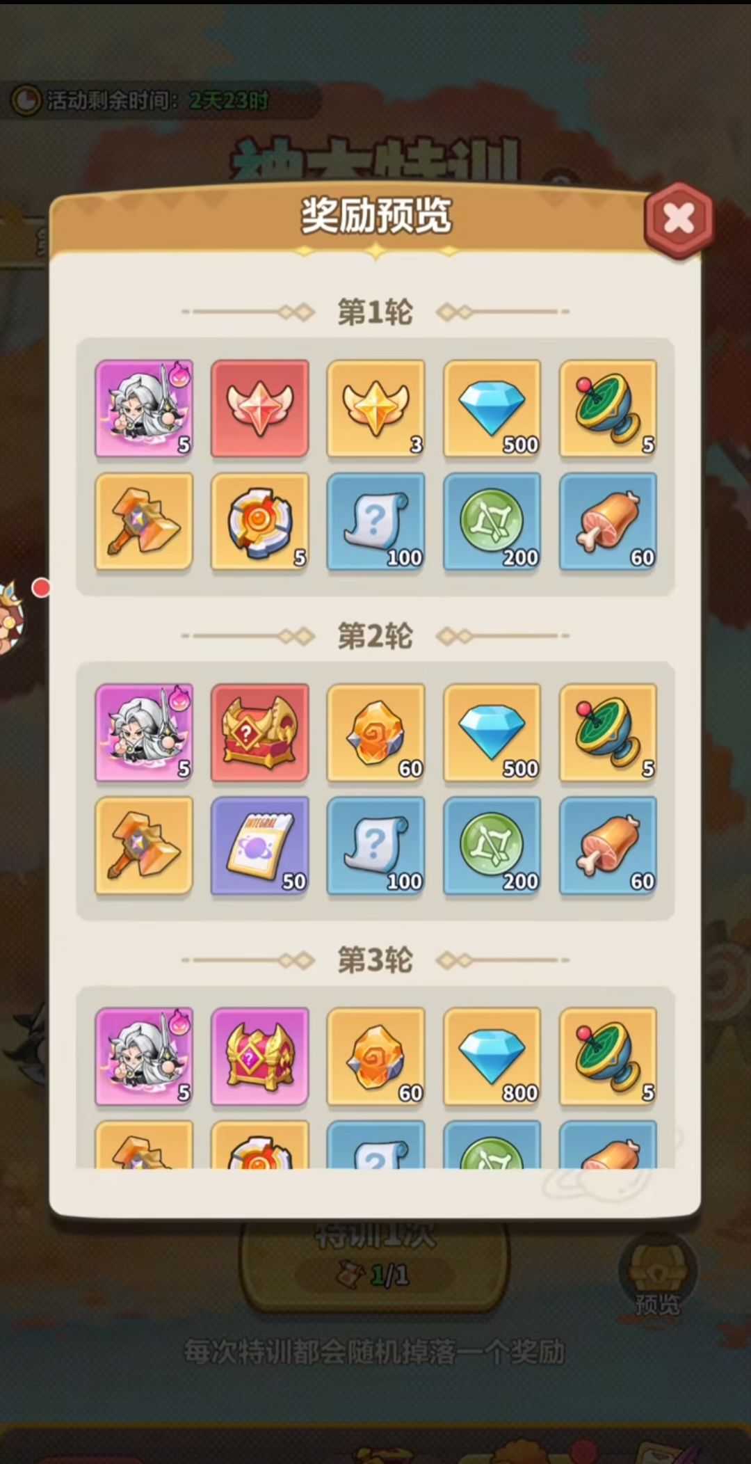 剑仙试炼采用类似神木特训的形式,消耗钻石可获取特训券,凭特训券参与抽奖,共三轮。完成对应任务能推进轮次,每轮有专属奖励。
