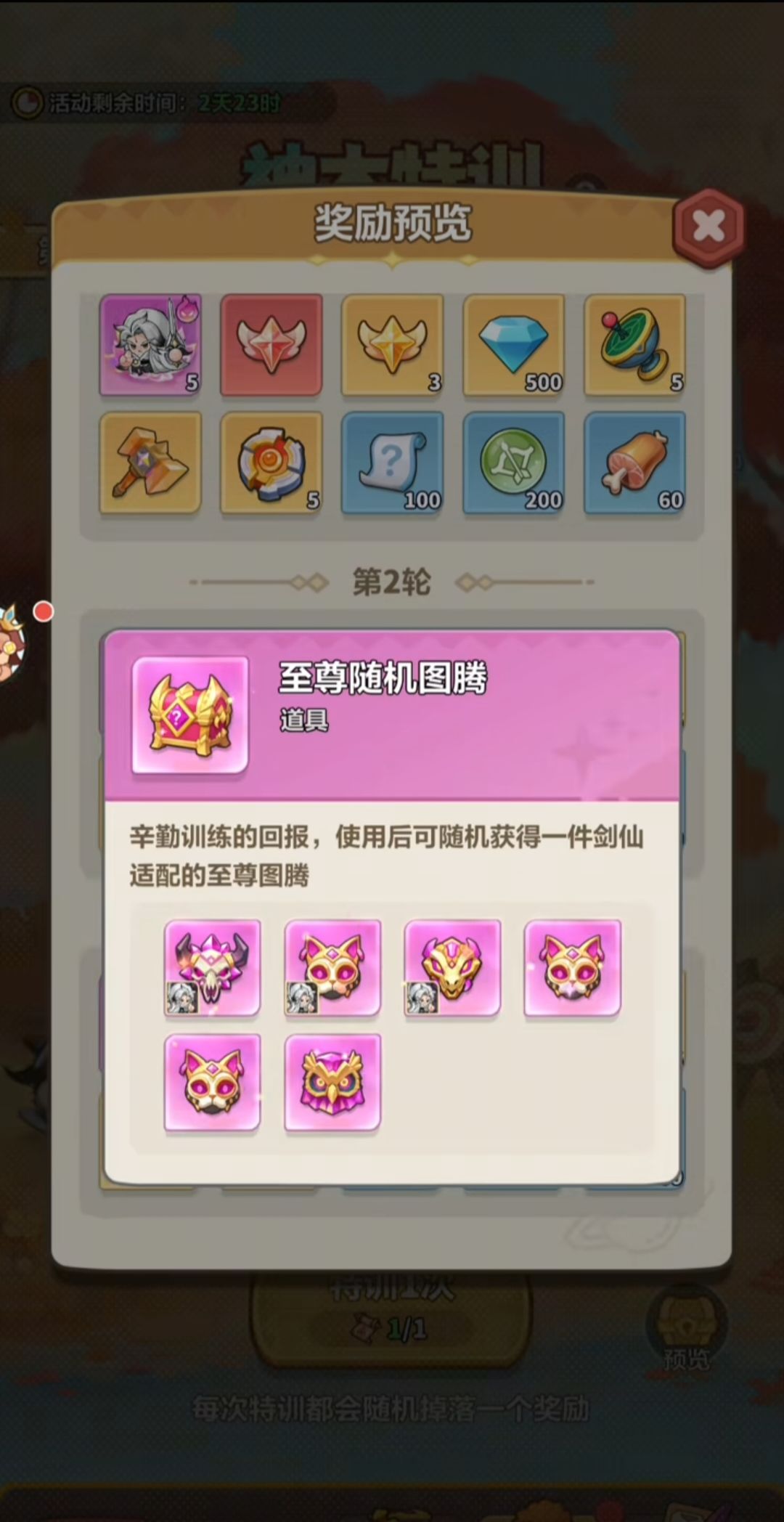 2. 第二轮:箱子中可产出稀有专属图腾,图腾品质高,对剑仙战力提升帮助大,是重点争取的轮次,能为剑仙搭配适配的强力图腾,大幅增强战力。