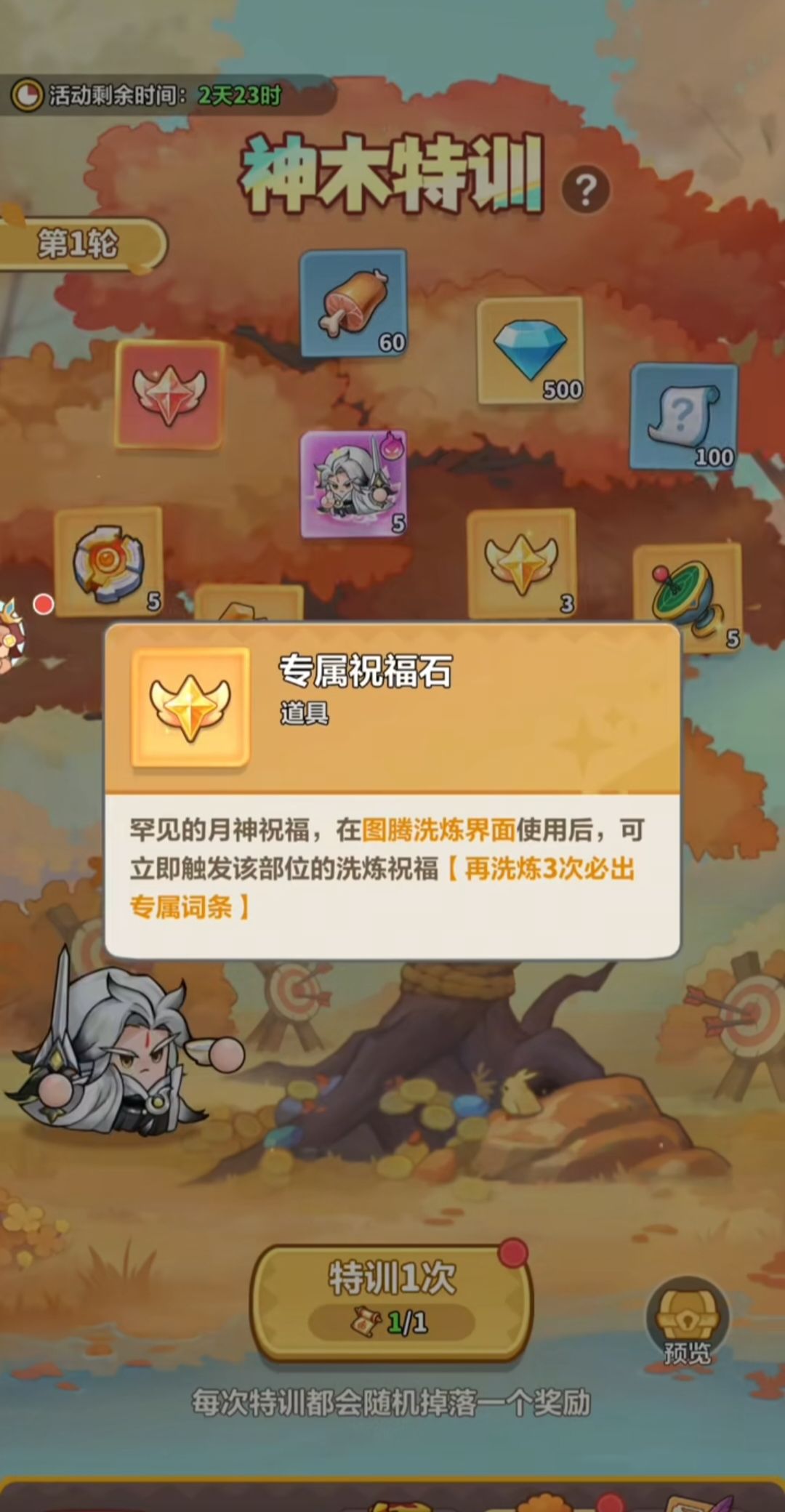 1. 第一轮:能获得专属祝福石等道具,这类道具在图腾洗炼界面使用,可触发洗炼祝福,助力获取优质图腾词条,是提升图腾强度的基础助力,值得优先参与获取。