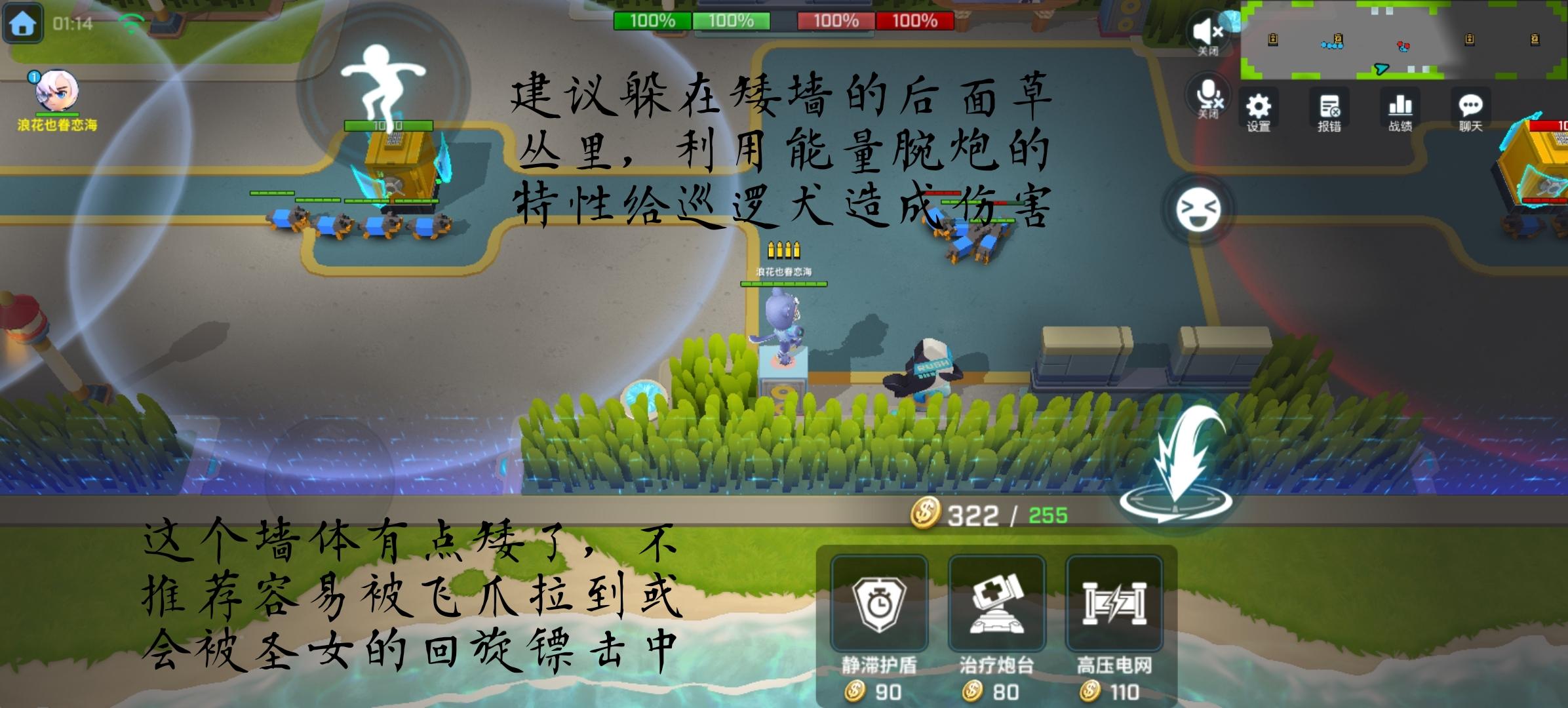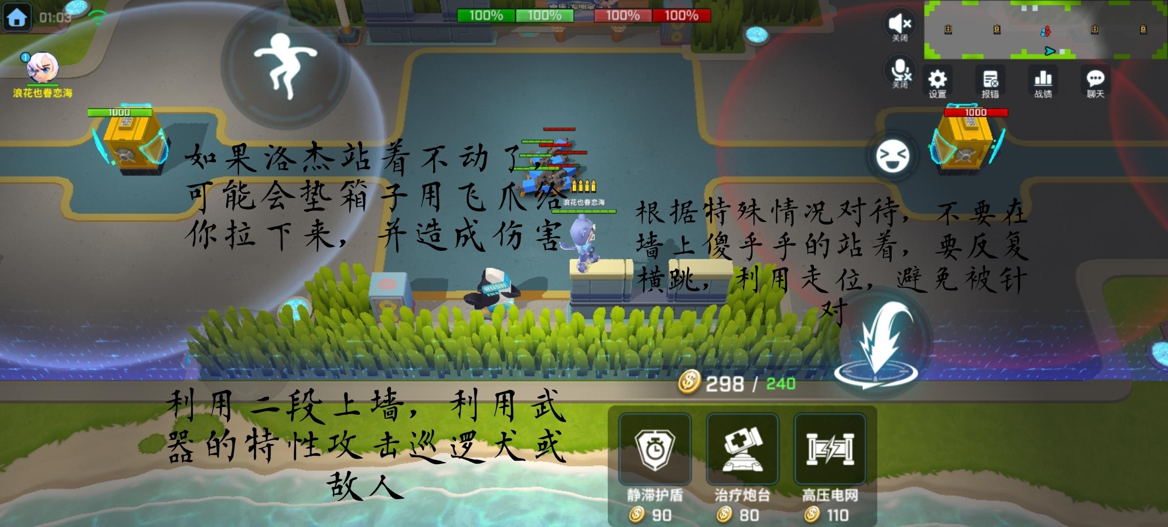 7、回血炮台可以提供一个掩体,既能回血又能扛伤害,还能防洛杰的飞抓,如果敌方推塔的时候,可以放一个回血炮台抵御部分伤害,减缓防御塔摧毁的速度,回血炮台也能作为一种信号,往前压就往前面放一个回血炮台,队友就会跟着炮台 回血的同时 清兵线或攻击敌人,能更好的摧毁防御塔。