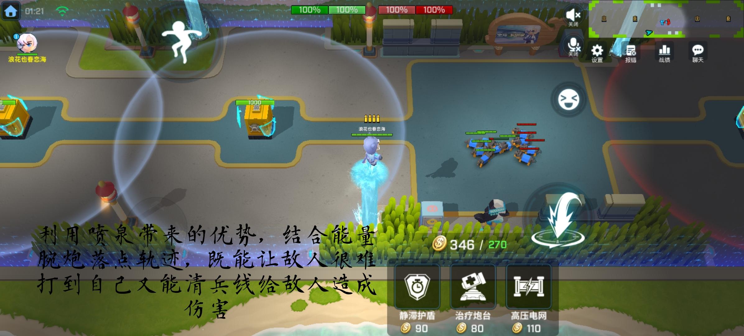 4、高压电网,放至时有2秒延迟(强者只会认为是预判),可给敌方造成一秒钟的眩晕(0.75秒造成眩晕),消耗金币110,是这三个技能中最贵的,使用时,我推荐三人打团时和队友配合打出组合技做到秒杀(高手过招,招招致命一秒钟的眩晕对于常玩金库的高手来说无疑是致命的)