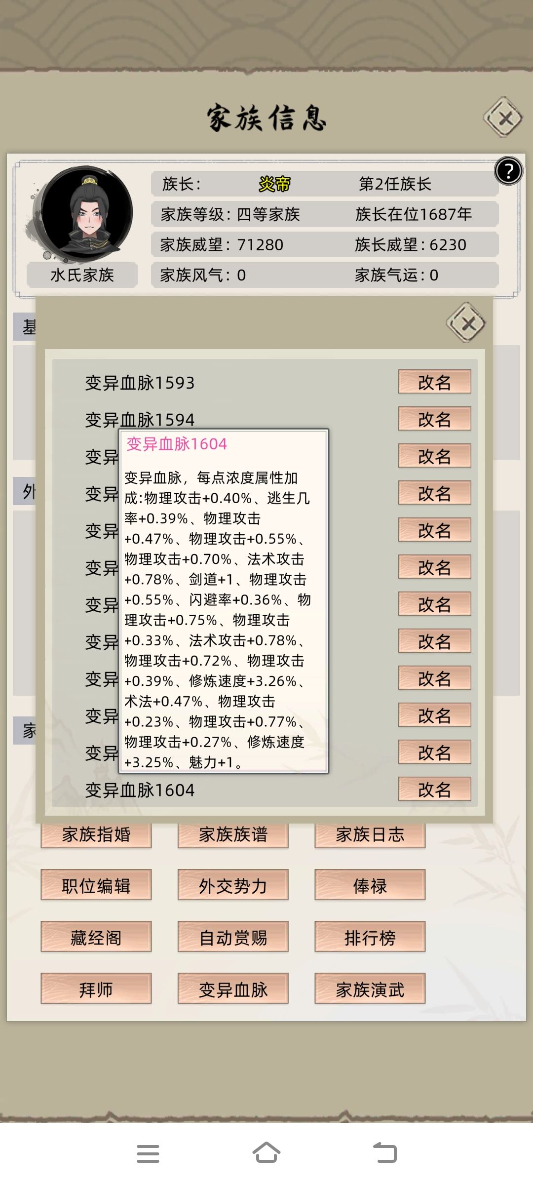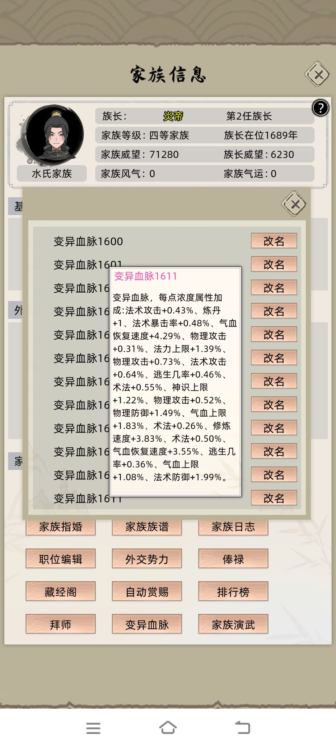 修仙家族模拟器 变异血脉加点