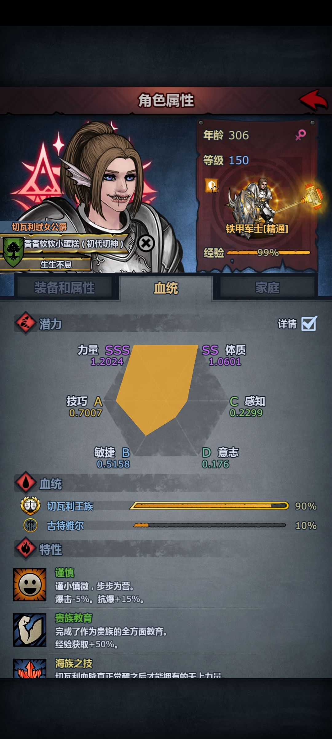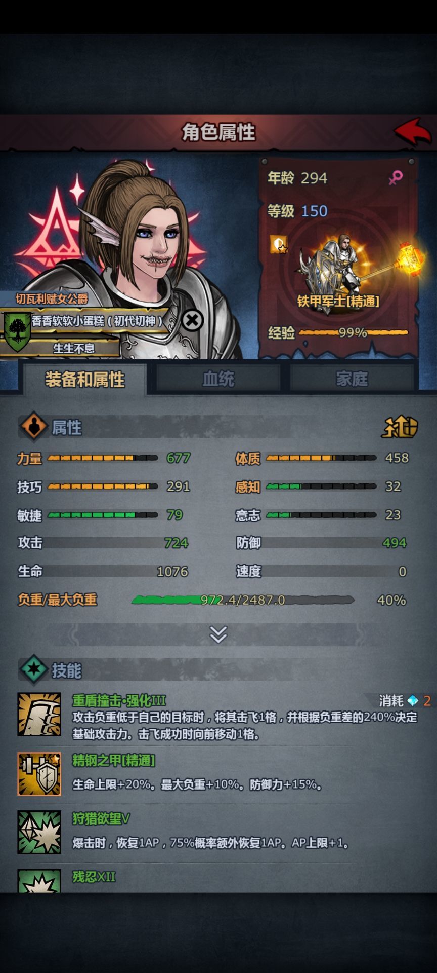 首先职业是铁甲军士,因为是切瓦铁甲,所以技巧很低,而且配置还不太够,有些BOSS是迂回打的,飞毛腿,威利,哈夫丹这三个切瓦铁甲实在凹不过(还是技低),转了盾勇固定出伤磨死了。