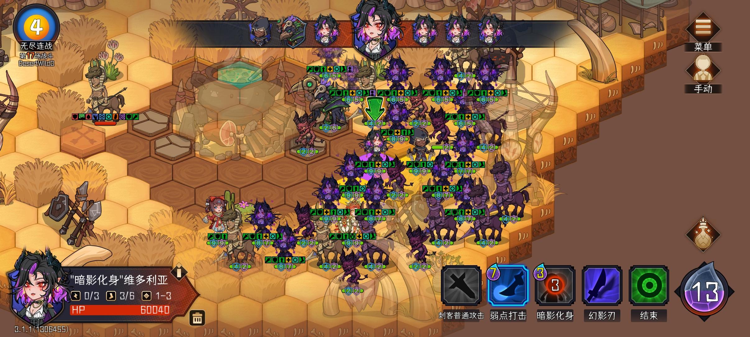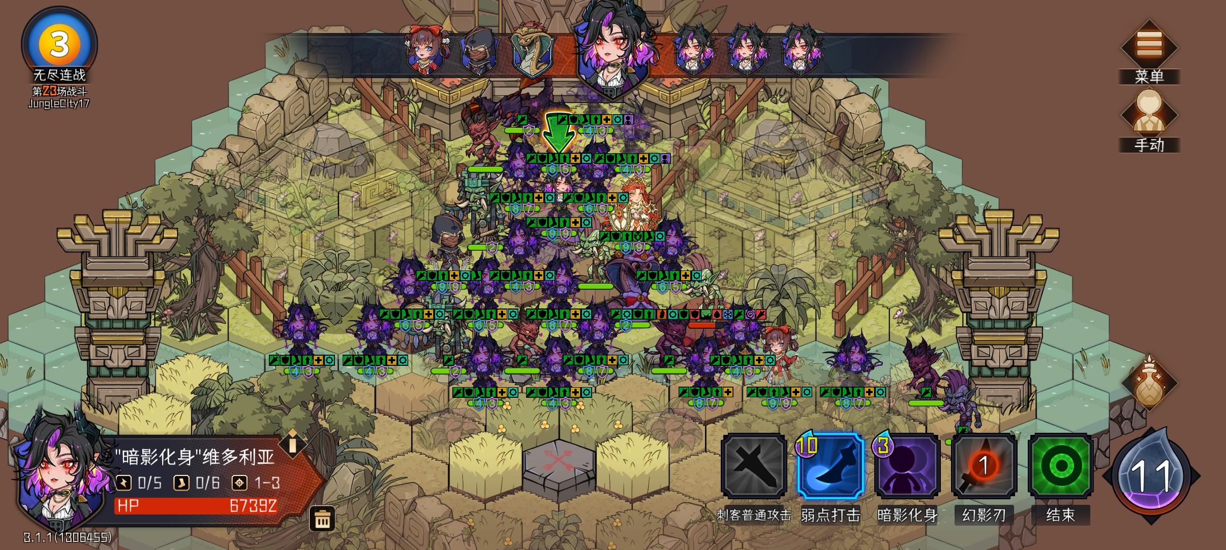 三格攻击距离正好卡在一格和五格中间,这显得幽奈在这赛季处境比较尴尬。但是他的暗影化身赛季词条非常强,三个分身就可以提供60攻击力,这对于在攻防区数值比较尴尬的幽奈来说,60攻击力数值足以弥补攻击距离劣势尴尬处境!