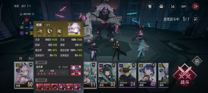 3. 夜离 技能455,智壳启示录,满级满突破。面板练度能到我这个就比较稳了,高更好。速度在保证满爆的前提下要尽量拉高,因为BOSS的免伤机制,每高一点速度BOSS都会少1.5%的免伤(总共60%)