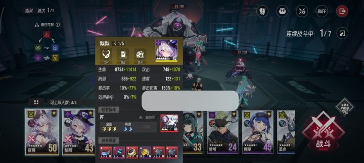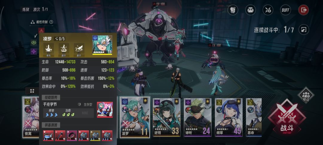 2. 绫罗 技能111,智壳千兆字节,满级满突破,智壳第二个技能选速度,其他随意。装备带速度套,我这里配到了246。这个速度是快于怪的,所以第一次出手全队还没受伤,不会用技能,只会平A。