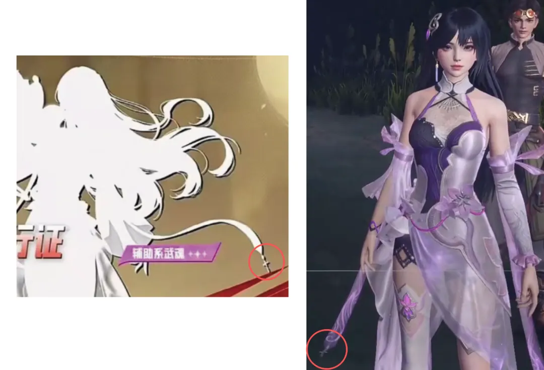 当然如果大家对于这个新武魂的身份有一定疑惑的话,那就可以直接看上边这个对比图了,维一找了个叶原的全身照,其身后自带的飘带末尾是一个类似于十字架的形状,而刚好官方放出的剪影也是把这个十字架样式的图案给显示了出来,所以仅从这个线索我们就99.99%可以确定新武魂便是叶原了。