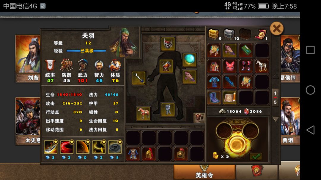 第五天,撸boss,散仙定身,火球上dot,或者不定身让关羽玩大旋风。很轻松可拿下。