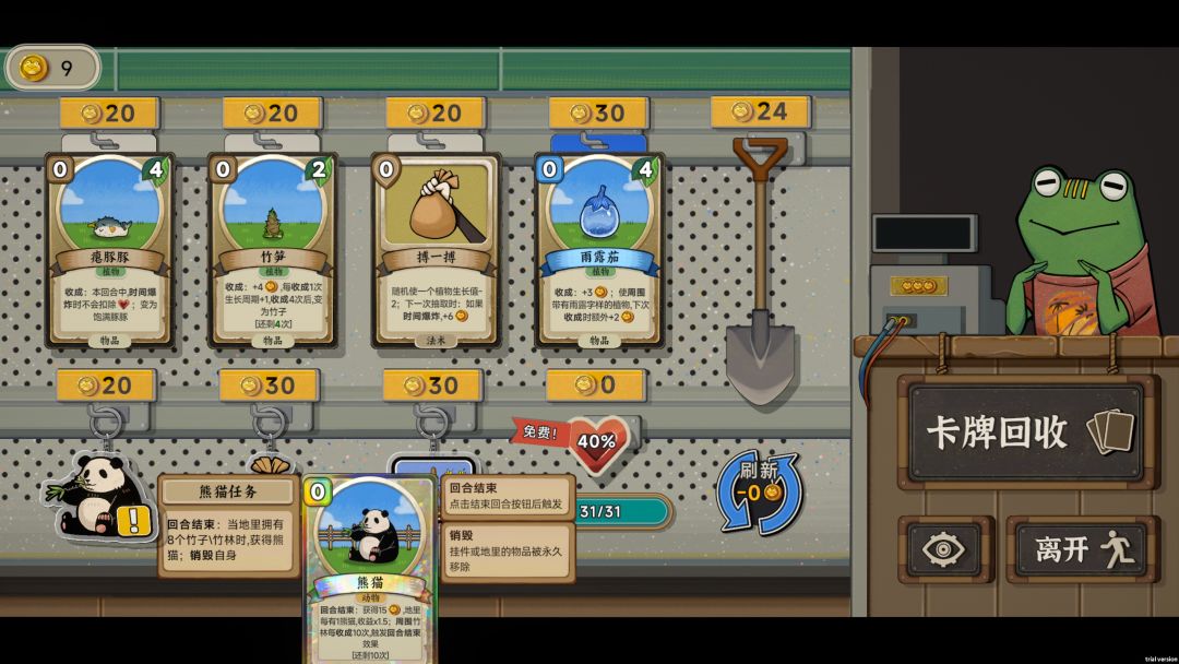 游戏的关卡设计以及出牌都有点像《小丑牌》,但制作组也有所创新,比如是根据地图上动植物的收成来决定获得的金币。