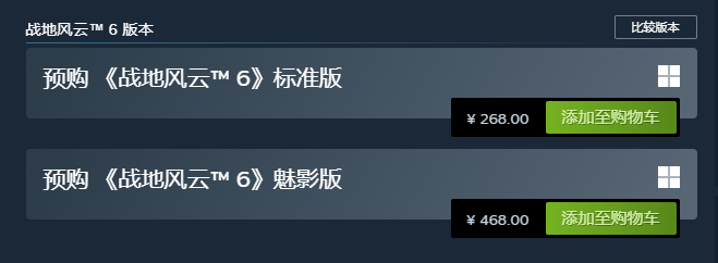 对了,PS5 实体盘目前已进入拼夕夕百亿补贴。截止发稿前,港版首发版有 381 元的,也有 414 元的;要是想要港版首发版加兵种光栅卡,就是 416 元。 Steam 国区的价格更给力,标准版才 268 元,还不到 PS5 版的一半,魅影版是 468 元 —— 这次国区价格是全区最低的。而且魅影版赠送的内容、预购福利,都和 PS5 版一模一样。