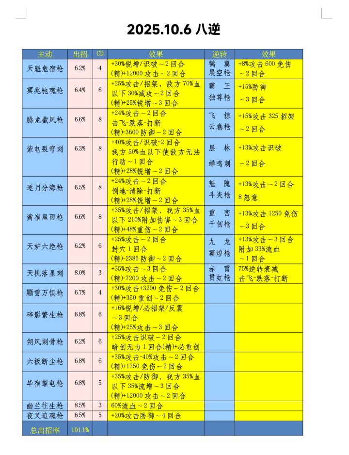 逆转方面:鹤翼是除幽兰赤霄倍率最高的,归为天魁麾下:独尊还是跟着冥兆;因为紫电加成高所以配上倍率也还行的层林;九龙逆转发挥其附加流血,跟着六绝打固破爆发;关于腾龙后面飞掠还是霁月,我想的是腾龙具有固破且带追击,直伤倍率高于流血,那飞掠相比霁月可以提高单回合爆发和增幅,至于霁月其实后面还有大用,目前暂时吃灰