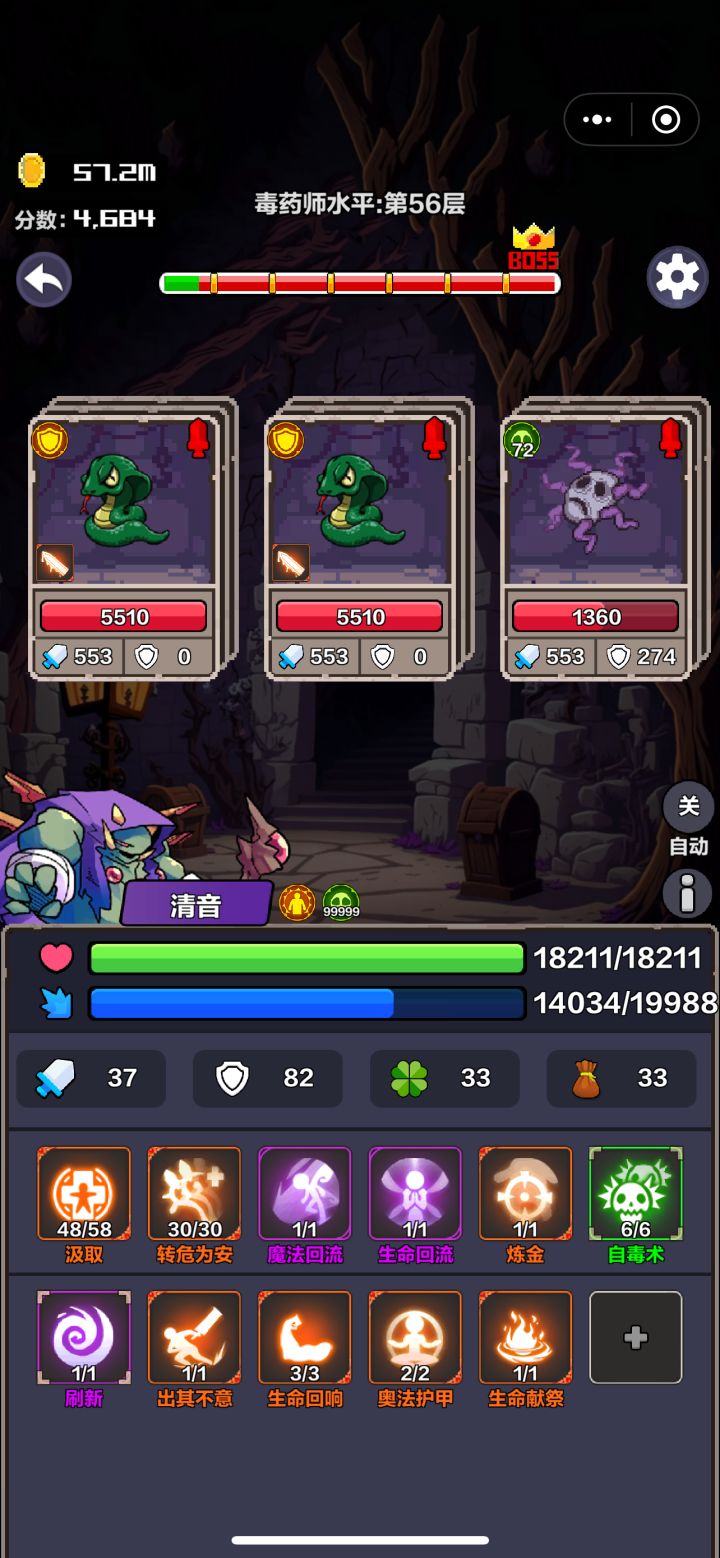 炼金一级,是因为可以小蛇叠毒,之后直接爆伤害爆钱(叠毒记得先把感染扔了,别给小蛇毒死)