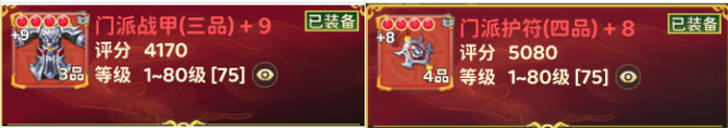 ▪️门派装备升品,可以优先养成门派护符,叠攻击属性加成;站不住容易被秒的可以养门派战甲,保证自己生存能力。
