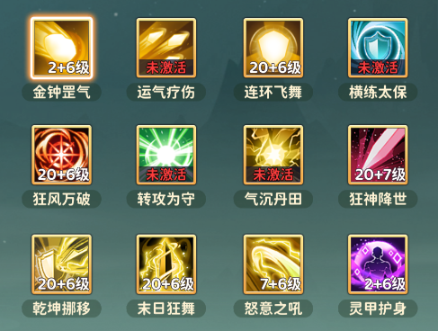 ▪️PVE(刷怪挂机):金钟罡气、横练太保、连环飞舞、狂风万破、乾坤挪移、末日狂舞