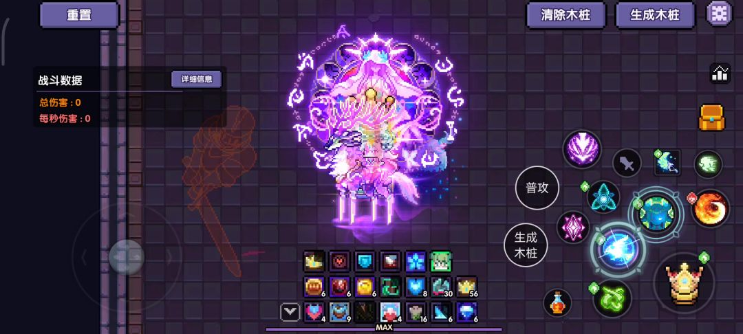 3、觉醒技能倒计时到7~8的时候,人物开始往远离“宠物”的方向走,直到宠物出现“匆忙回到玩家身边”时回到木桩旁边;倒计时到5的时候将宠物拉回到木桩旁边;倒计时5~3的时候开启小莫魂系,同时把武器切换到魔女武器(暂时不能按普攻!);倒计时到2的时候清除木桩;倒计时到1的时候生成木桩;木桩出现后先点击内置连点器把所有buff都打开然后再点普攻(普攻一定最后再点!)