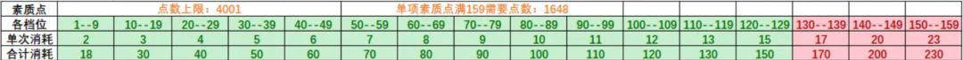 然后你有贞努比亚卡的话,并想细化增进收益(每12力量,12智力,12灵巧,+0.1%技能伤害)的情况下,想再细化加点,即遵循以上前几条基本大纲,从智力扣一些点去加到力量与灵巧上,去自适应加点尽量满足力量,灵巧,智力,各自满12的公倍数(也不必刻意强求,后面磨多磨少收益都是0.1%都没有的程度,believe me,我深谙此道),以达最大收益。以下贴出素质点相关规律信息以辅助各位更好地计算(或测试得)各自的最优加点: