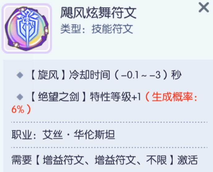 S符文【飓风狂舞】:减少【旋风】CD最大3s,PVE中意义不大