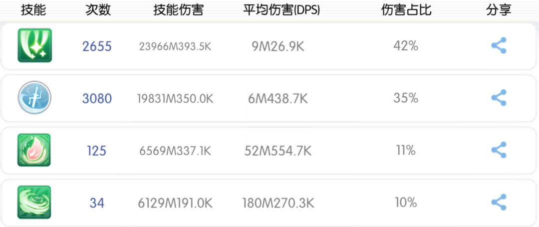 为此我们要测出长伤害周期的各技能伤害占比,进而再作计算来算收益。