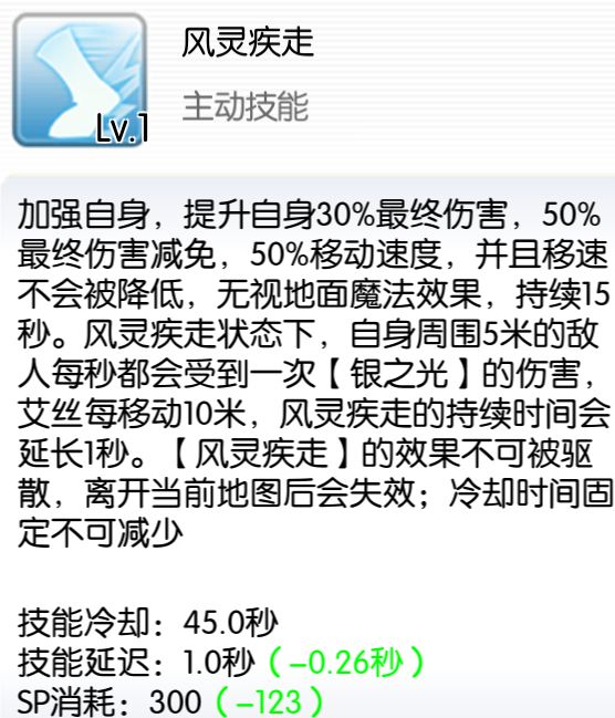 接下来的是我最喜欢的部分:【艾丝每移动10m,【风灵疾走】的持续时间会延迟1秒】