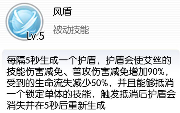队伍有【贝尔】职业队友情况下,【贝尔】也有【炎风的守护】技能,效果和【艾丝】反过来的,图标颜色为红色),艾丝和贝尔都在有效范围内各自释放【炎风的守护】技能(不强求同一时刻),全队将总计获益20%移速与100闪避,以及受益者100%最大生命数值的伤害吸收护盾。