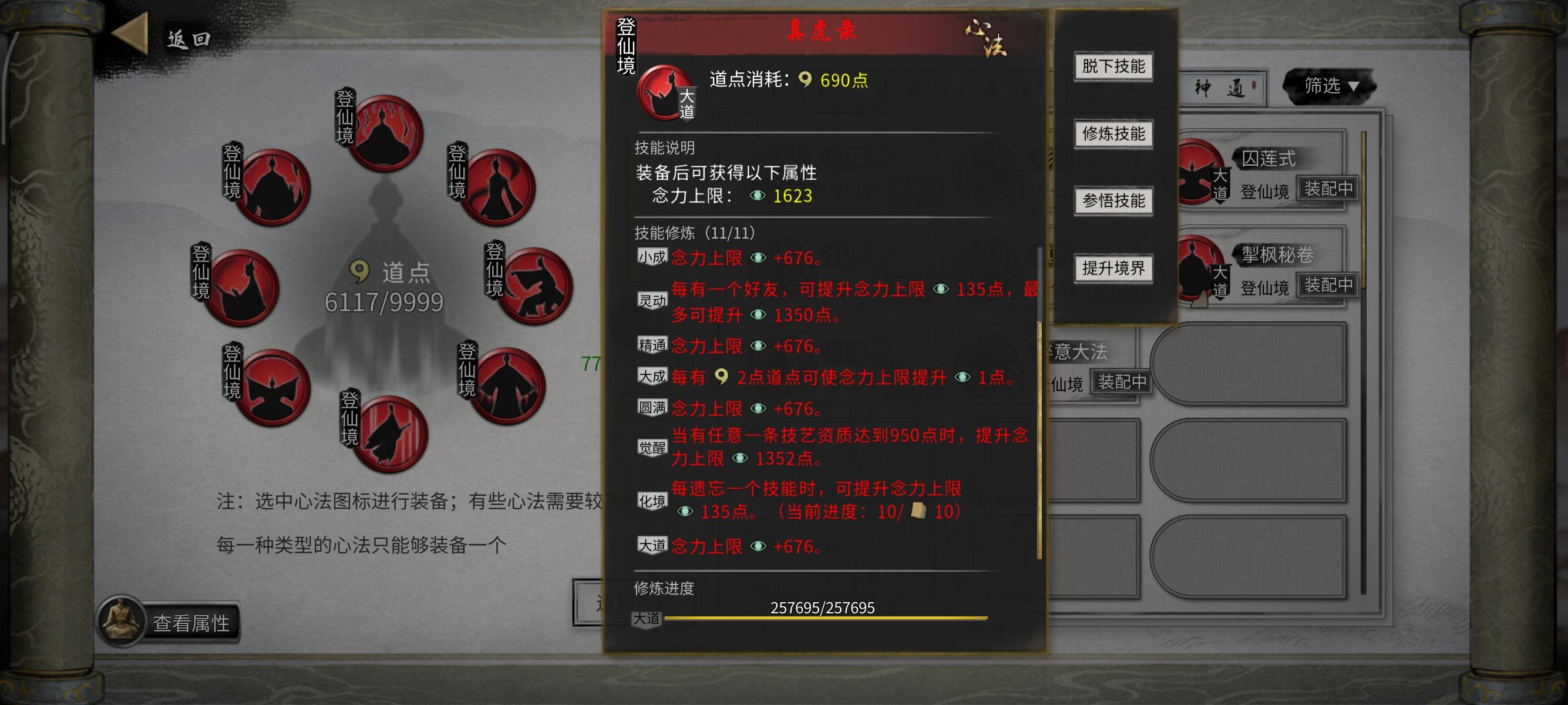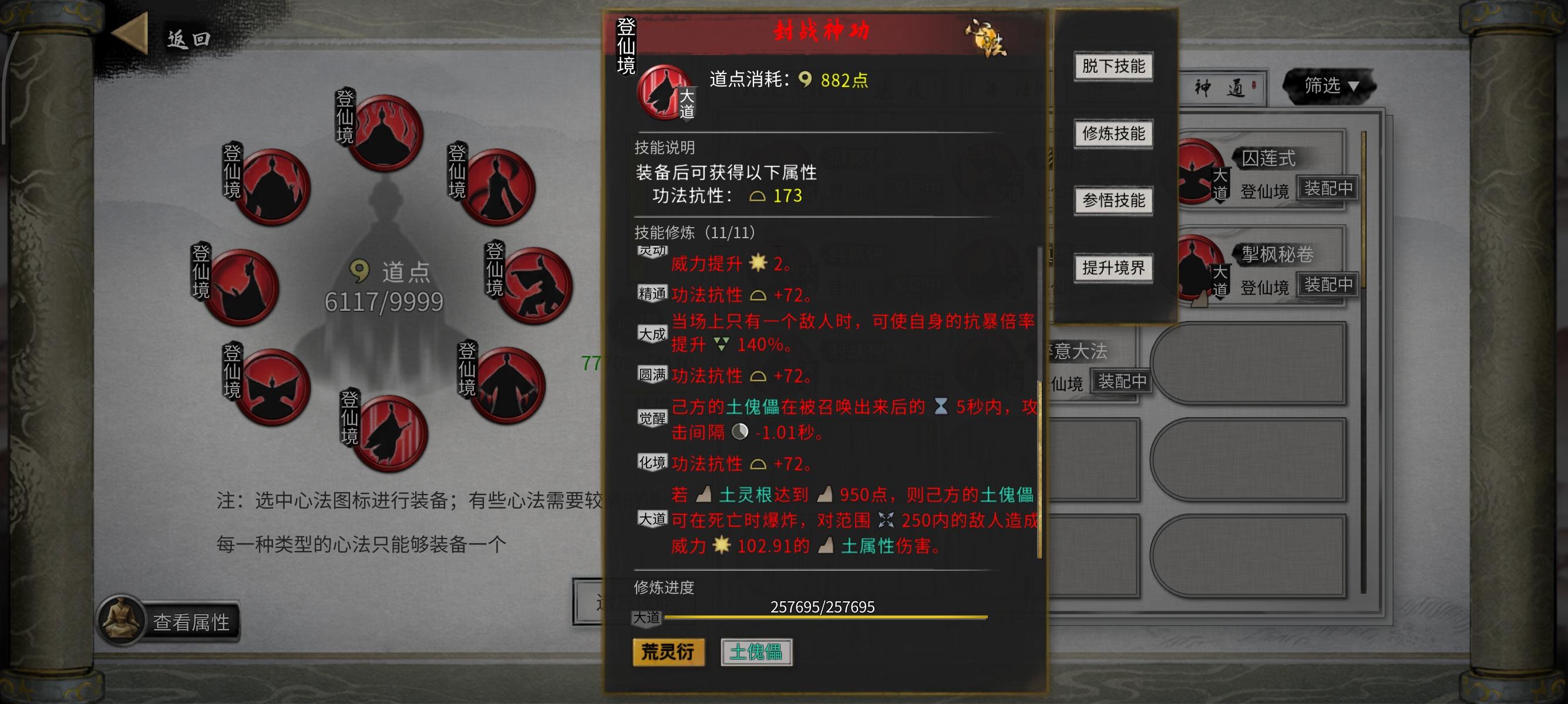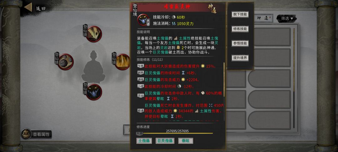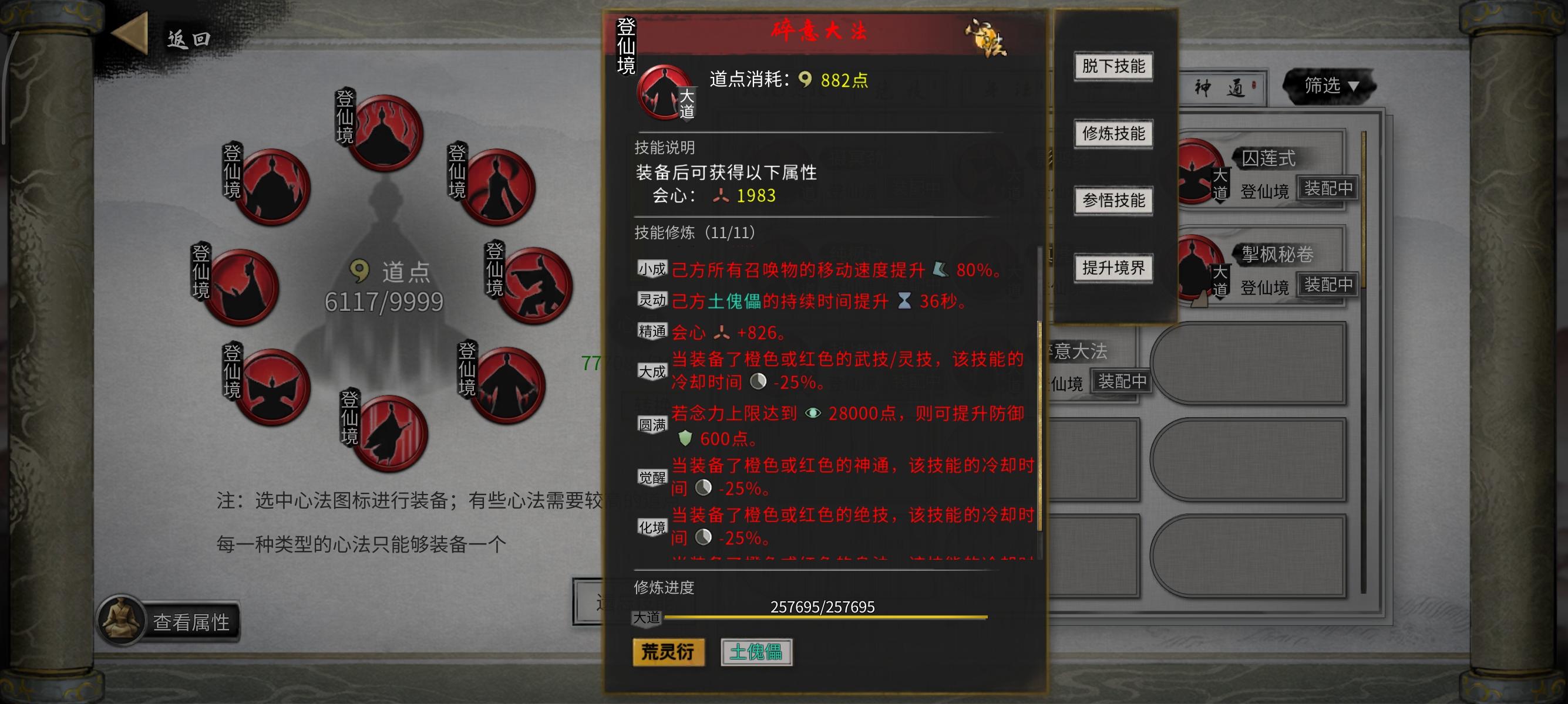 4.道心宰御,冥羽青鸾(有召唤物效果,最后一张图),道魂土风木看着搭配(不太依赖),神魂蛟龙补伤害(可自己根据情况选)。