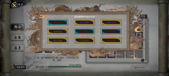 2.逆天改命如上图,图中血灵入门只是前期过度使用,后期可换掉(武罗记忆和刑天记忆等)