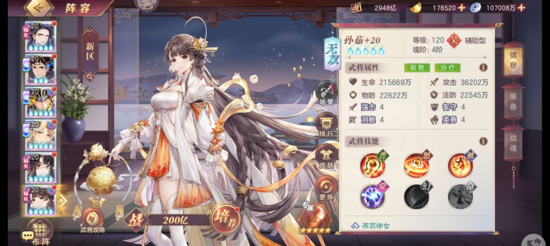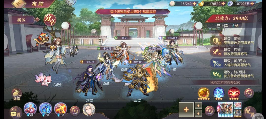 龙魂建议每个前两星都先点了,因为一星一个龙魂给1.5加成,2星两个给2.5后面1个龙魂都只给1,这两个搞完可以考虑集中周瑜。