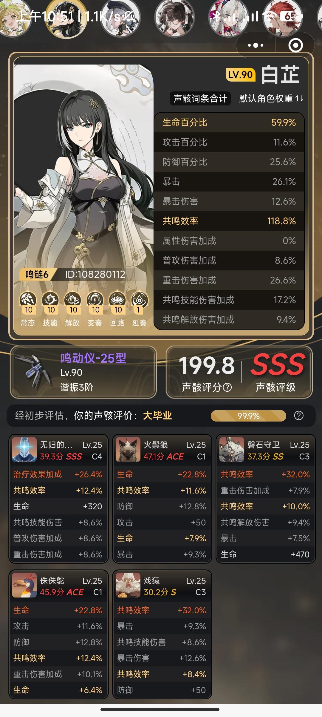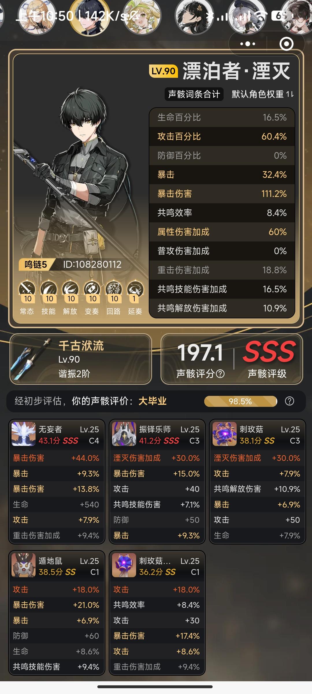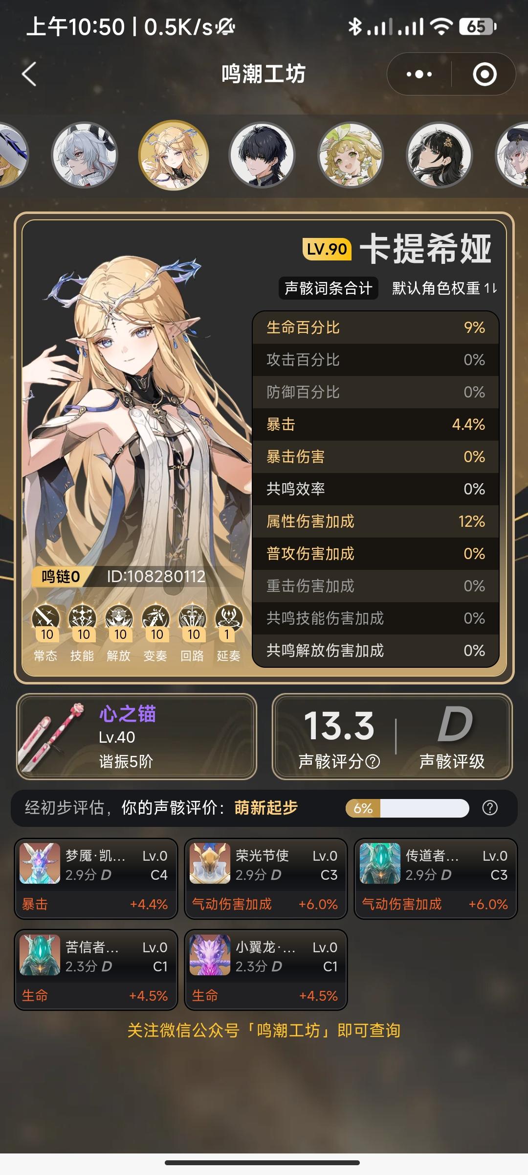 1.作为开服抽的第一个角色,牢忌,评分居然是所有主c里最低的,风系声骸也太难刷了