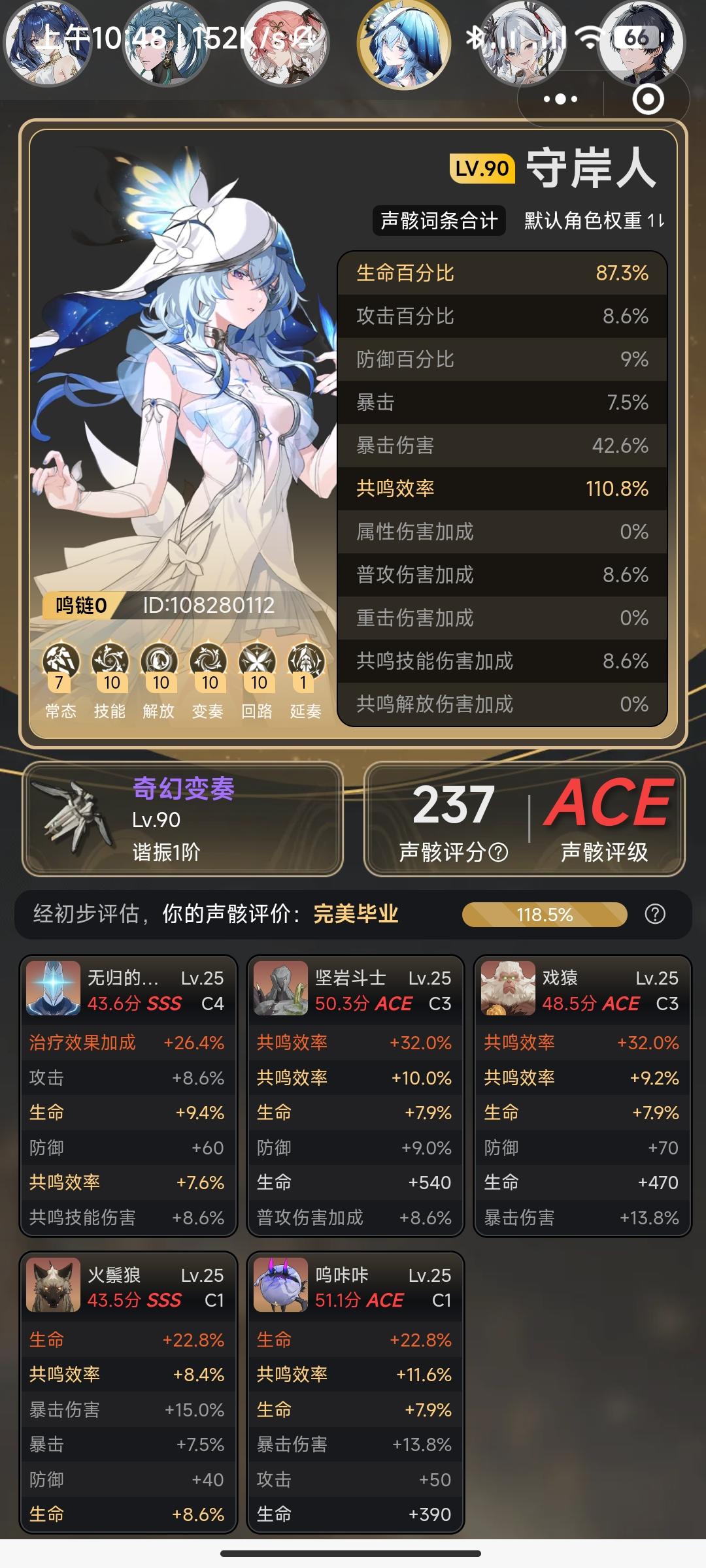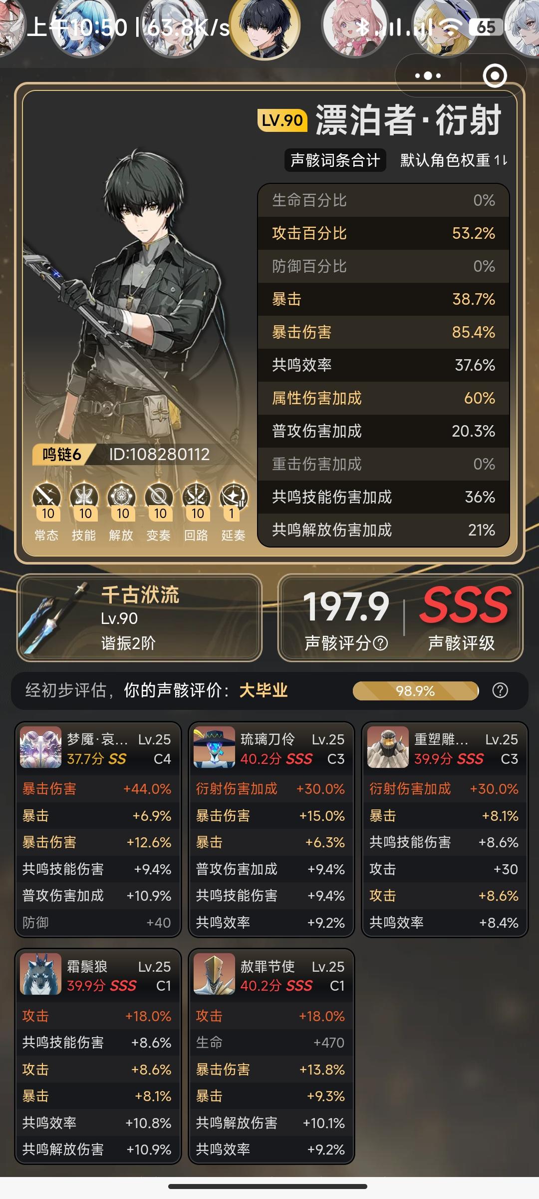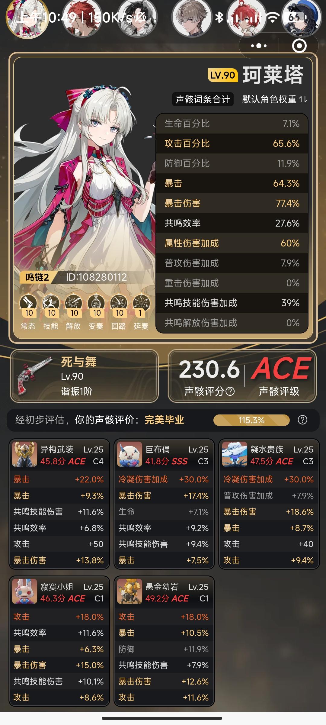 1.作为开服抽的第一个角色,牢忌,评分居然是所有主c里最低的,风系声骸也太难刷了