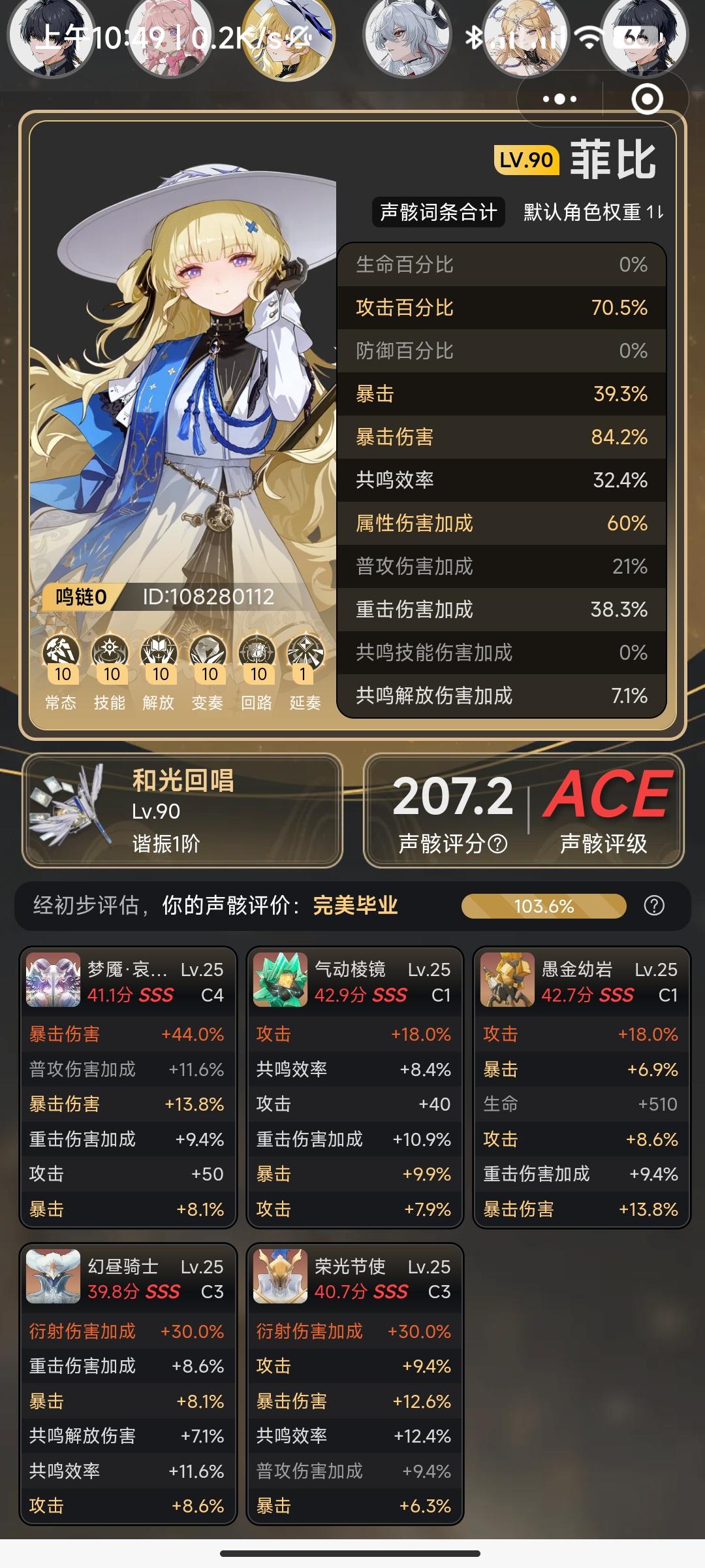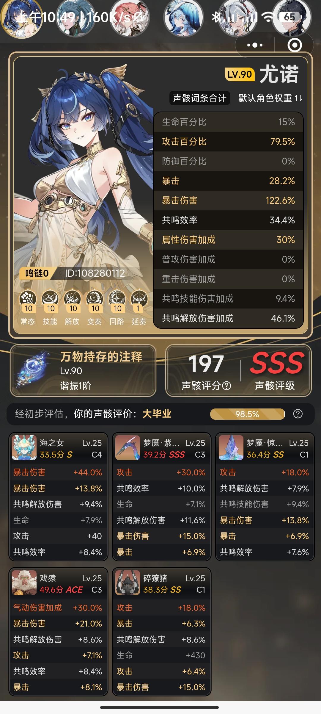 5.昨天才抽到尤诺,一直没有打伤害声骸,先凑合带着,刚发现每天只能打一次,以后慢慢做吧