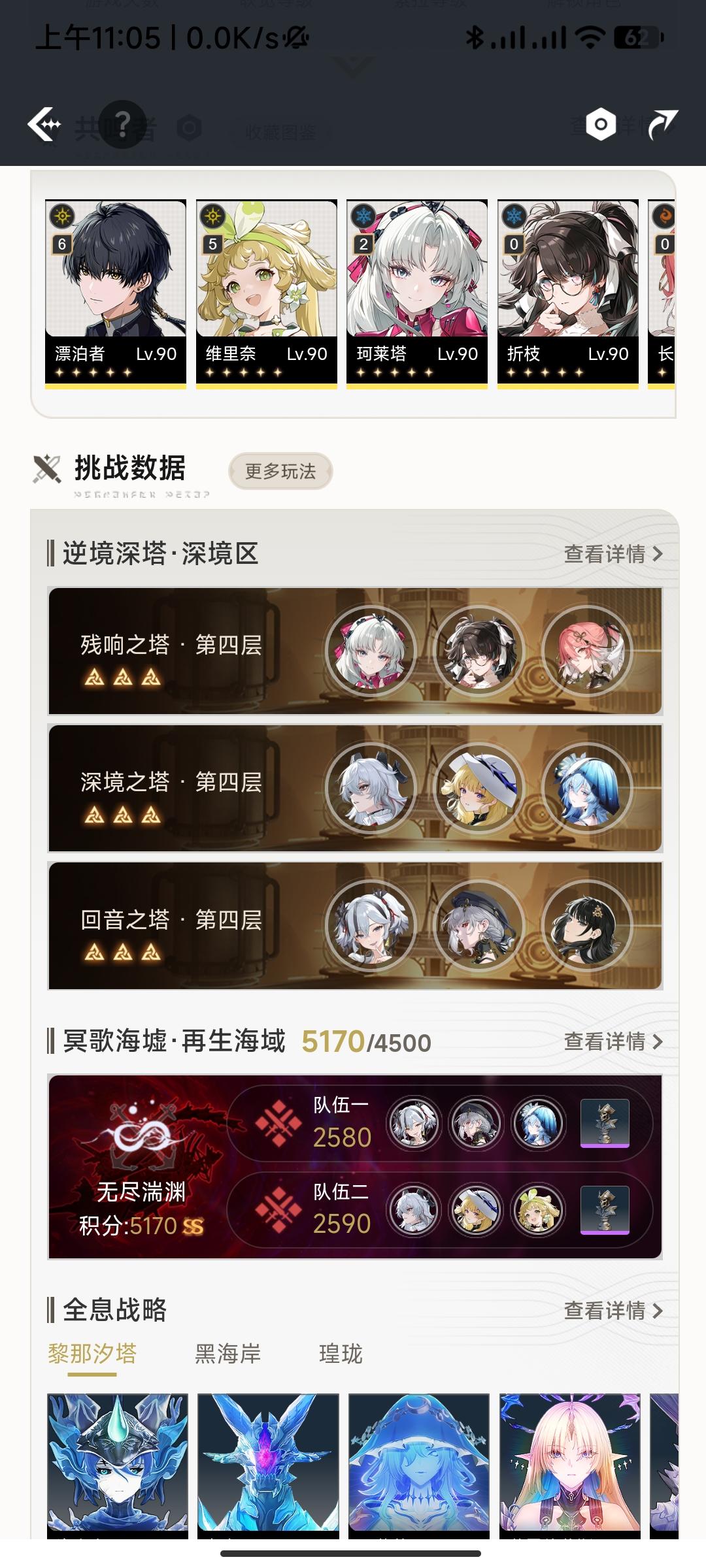 6.长离真的尽力了,最喜欢的角色,然而每次只能打深塔的左右4,还是卡着边过,太难了,什么时候加强长离啊库洛