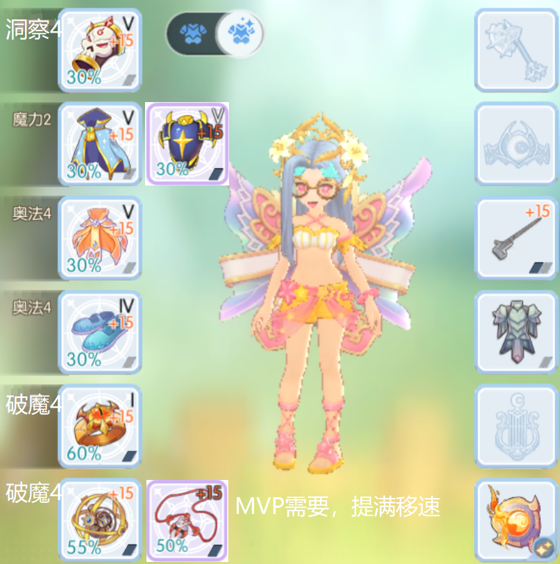 右边附魔因为测试调整去掉了,实操需要把武器附魔利刃4、脸洞察4、背部洞察4、尾巴奥法4