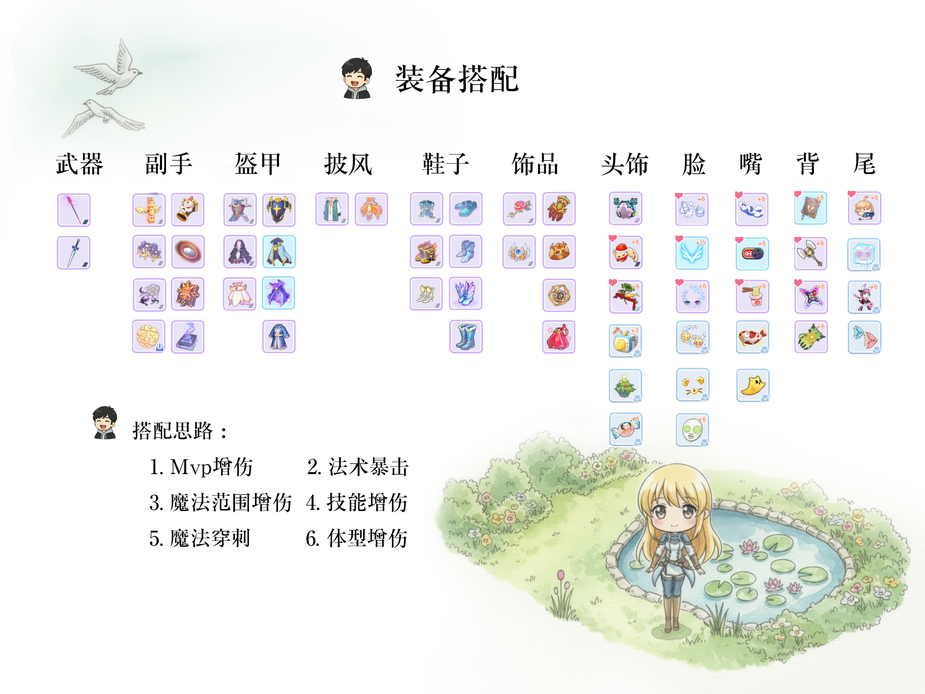 上面都是可选的配装,根据之前分析的增伤优先级可以配置自己合适的装备/卡,但需要注意水桶模型不要某一方面形成短板导致伤害出不来,不同的号可能都会有差异,建议大家自己亲自试试那种搭配最好。