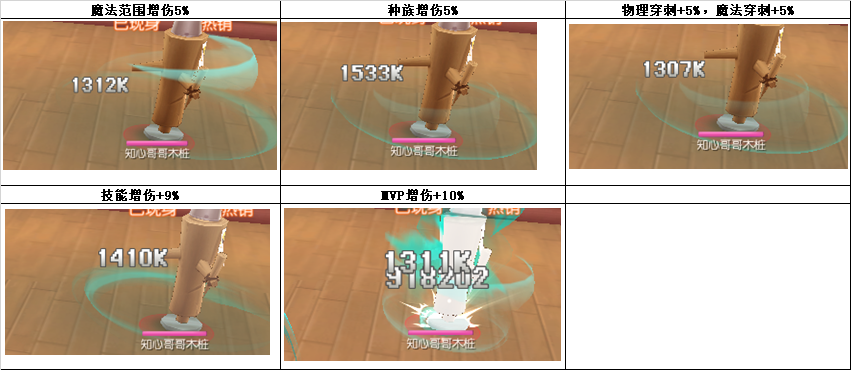 其中有争议主要集中在:魔伤、破防、穿刺、元素增伤、魔法范围增伤、mvp增伤、大体型魔法增伤和体型增伤的选择上,下面我做了一些基础测试,试图分析他们的优先级。