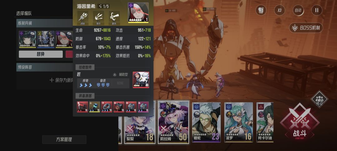 ③海因第二次出手一定要驱散boss防御状态,可以试着带万魔海因增加稳定概率