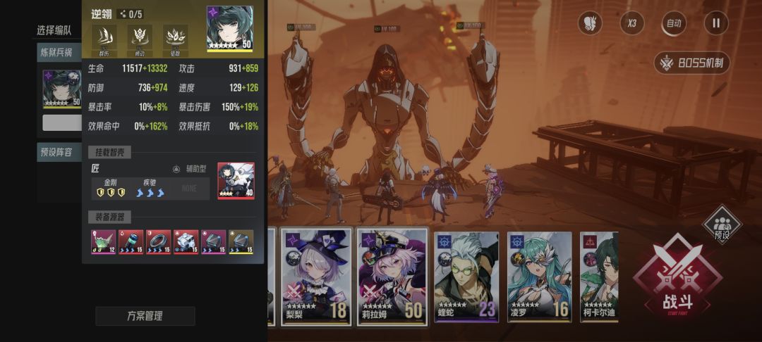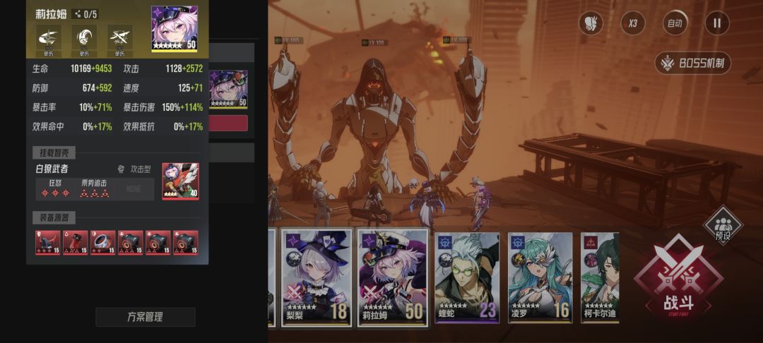 ①本阵容思路为叠加减益状态,配合乘胜追击让莉拉姆尽管装备不怎么好也能两个大招秒杀兵祸。因此翻车概率与效果命中和速度有关,效果命中和速度越高越稳