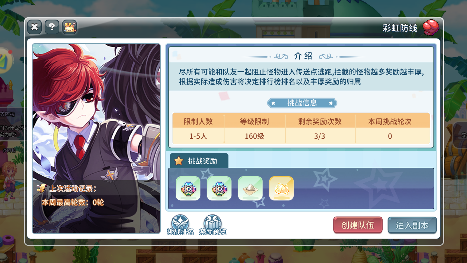 - 彩虹防线:每日限定挑战 3 次,需拦截多波魔物进攻,成功防守可获得 “防御勋章”,勋章可兑换宠物技能书、翅膀进阶材料等稀缺道具。