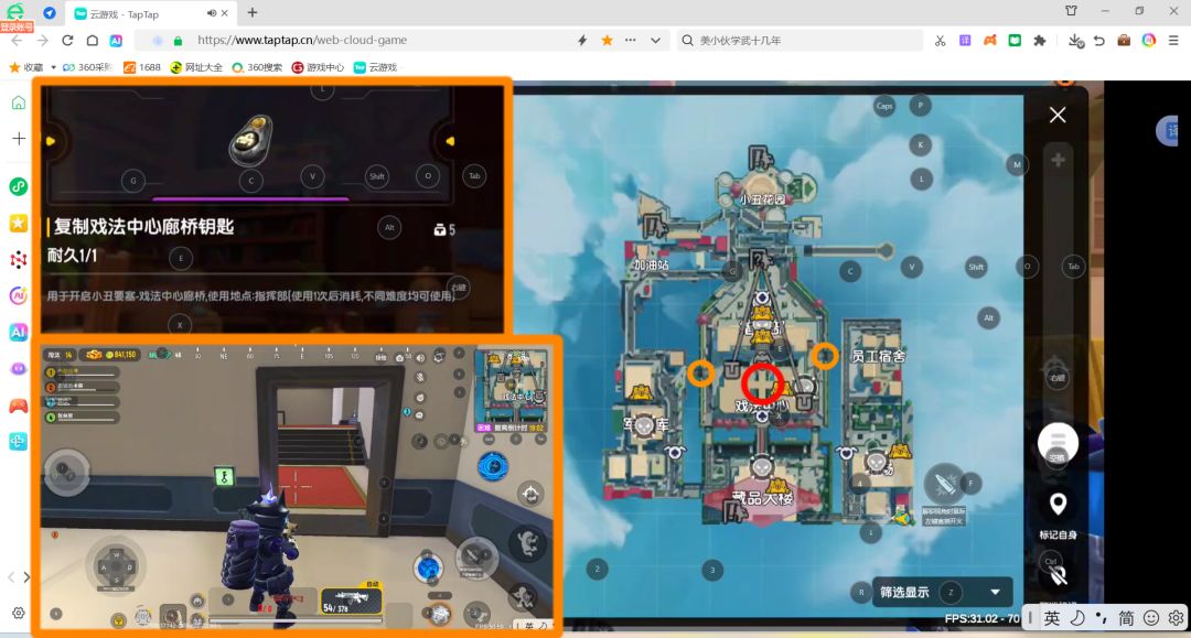 复制戏法中心廊桥钥匙(紫色品质)在戏法中心楼上【图中红圈标记】,因为东西两边廊桥都可以插入钥匙,要注意队友来抢。