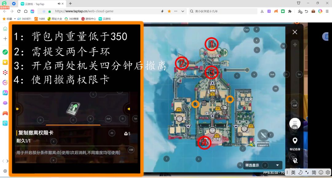 撤离点1:背包内重量低于350。