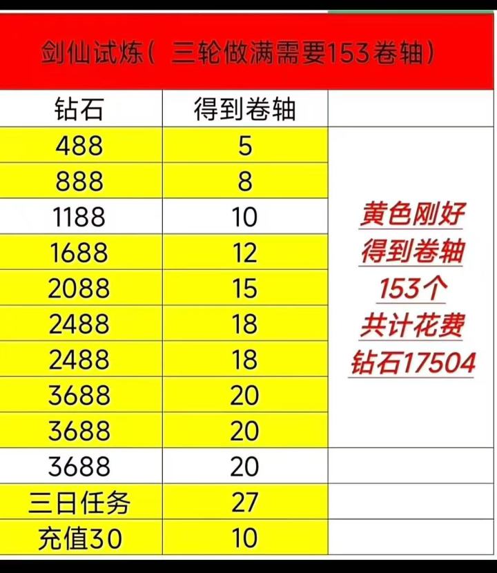 剑仙试炼采用“神木特训”式玩法,核心为消耗钻石购买特训券参与抽奖,共分三轮,需拿完当前轮次所有奖励才能解锁下一轮。奖励获取途径分为两类:一是通过完成每日任务白嫖特训券,足以覆盖大部分第一轮奖励;二是消耗钻石购买特训券冲刺后续轮次,每轮均有专属核心奖励。