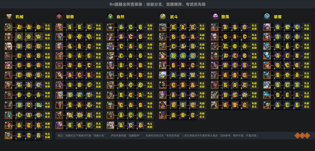 BN国服全阵营英雄技能分支、觉醒顺序、专武优先级(重制版)