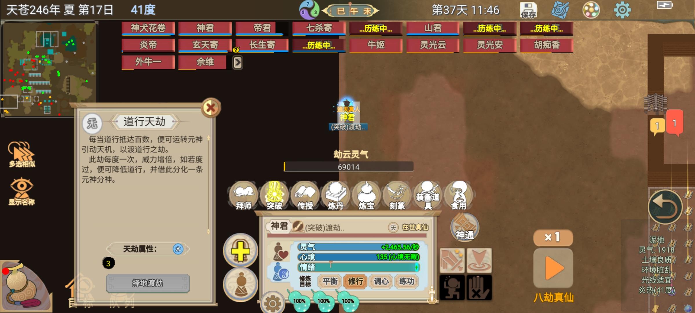 利用七杀寄学技能空挡,神君在渡一次道行劫。(由于杀门派大能还差些,需要再学一些技能)