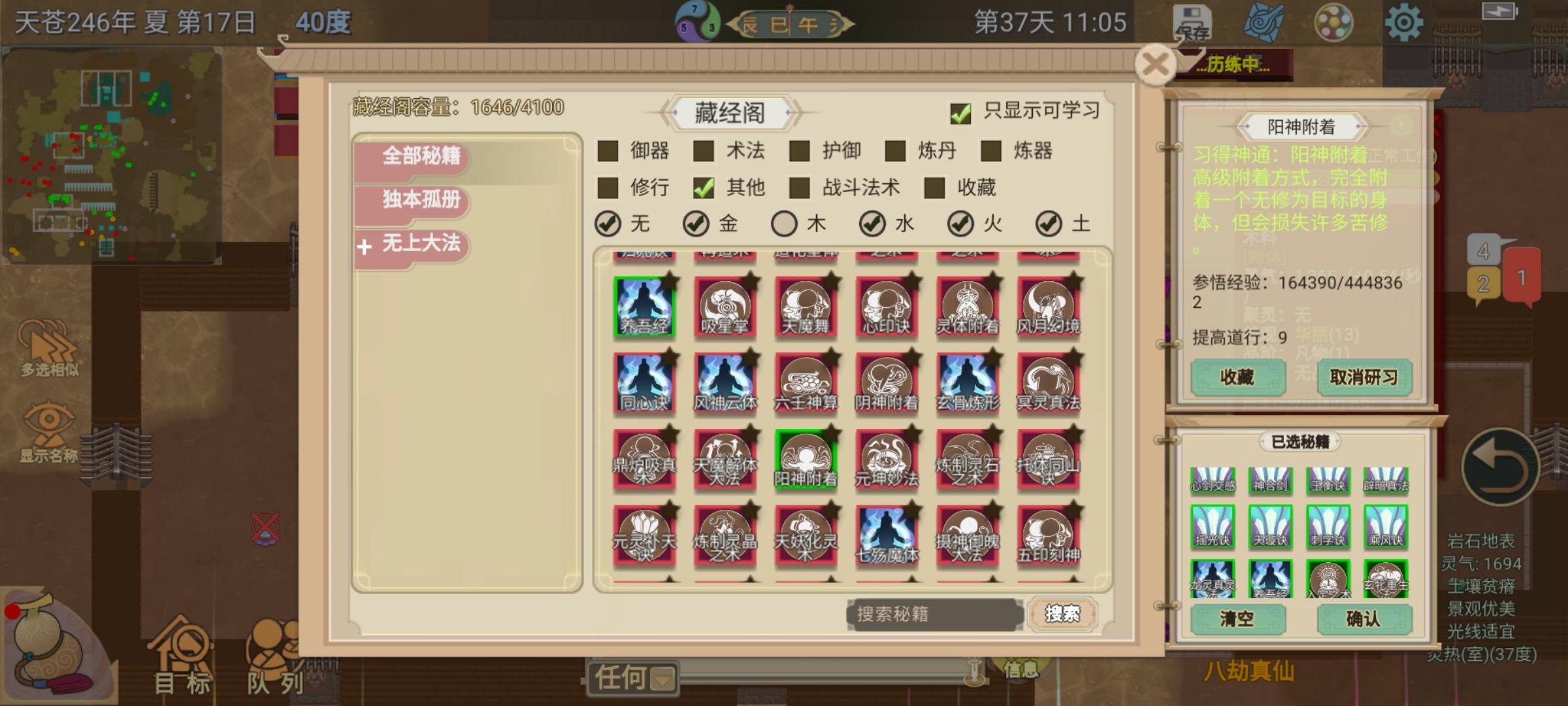 七杀寄渡完劫,带上“减道符箓”、“灵源种”学习《法宝速度》、《入定》、《玄牝重生》、《阳神附着》等功法。