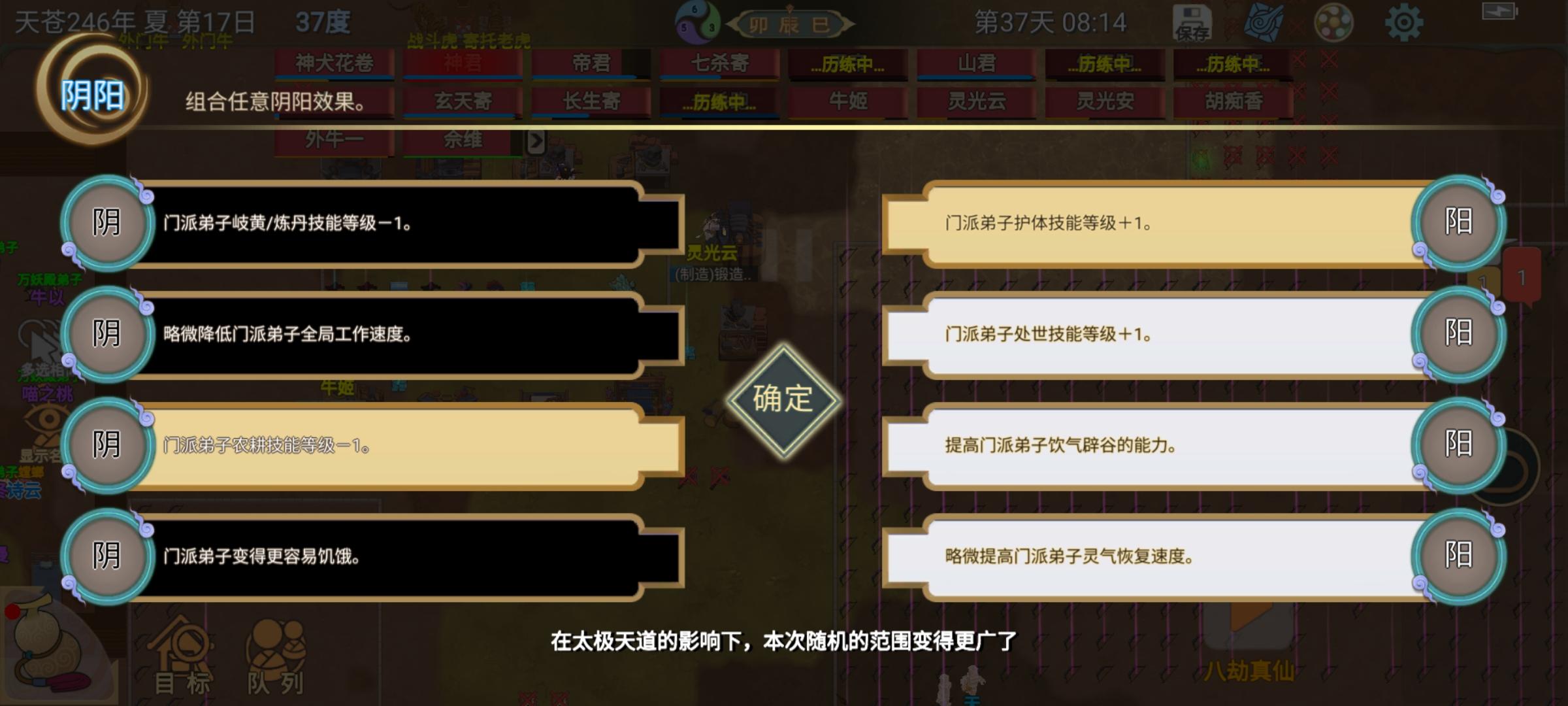 第二个声望阴阳异动选择,负:农耕-1,正:护体+1。